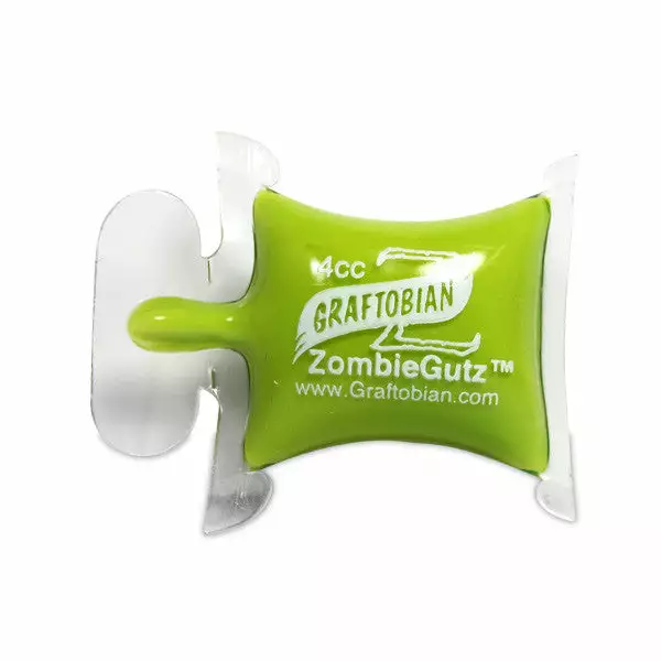 This glycerin based product drips slowly and never dries, allowing a wet looking effect for literally days. The ZombieGutz can also be used in mass casualty simulation to depict burns, decay, and gangrenous effects.