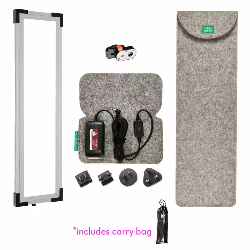 The Eyelight is finished with a brilliant glossy illumination panel and sleek metal case in spectacular Chrome. The panel includes a custom-fitted felt storage pouch.