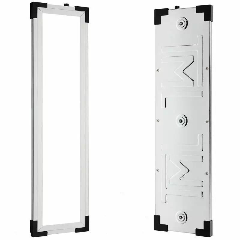 The Eyelight is a bright, dimmable, daylight-balanced (5000 K) LED light panel designed for even illumination in a long rectangular strip. The narrow shape of the Eyelight illuminates wrap-around soft, yet contrasty light shaped for faces.