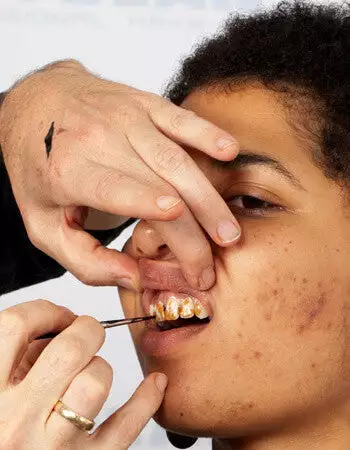 Kryolan Tooth Enamel is a special product for the color design of teeth. Ideal for theatrical and SFX makeup.