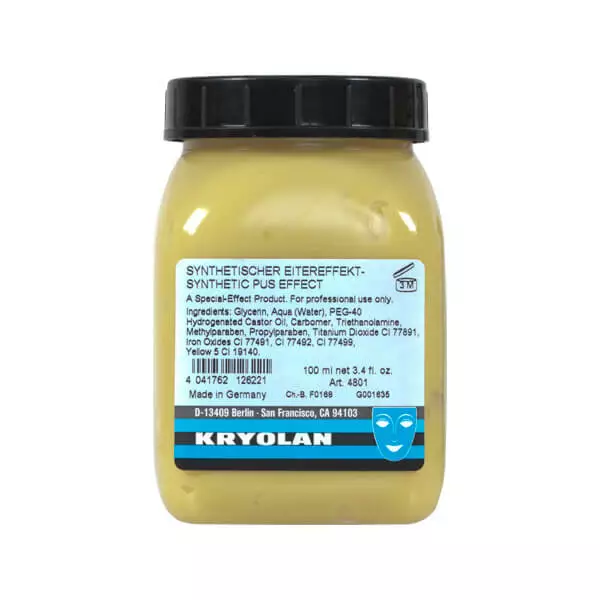 Synthetic Pus Effect is a preparation for special visual effects in a suitable consistency, color, and hygienic cosmetic quality. It is advisable to use this product only in little amounts for a realistic effect.