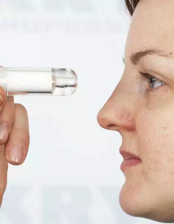 Tear Blower is a make up artist’s tool, consisting of acrylic glass filled with menthol crystals. Tear Blower can be used repeatedly until the menthol crystals lose their effectiveness. Tear Blower is refillable.