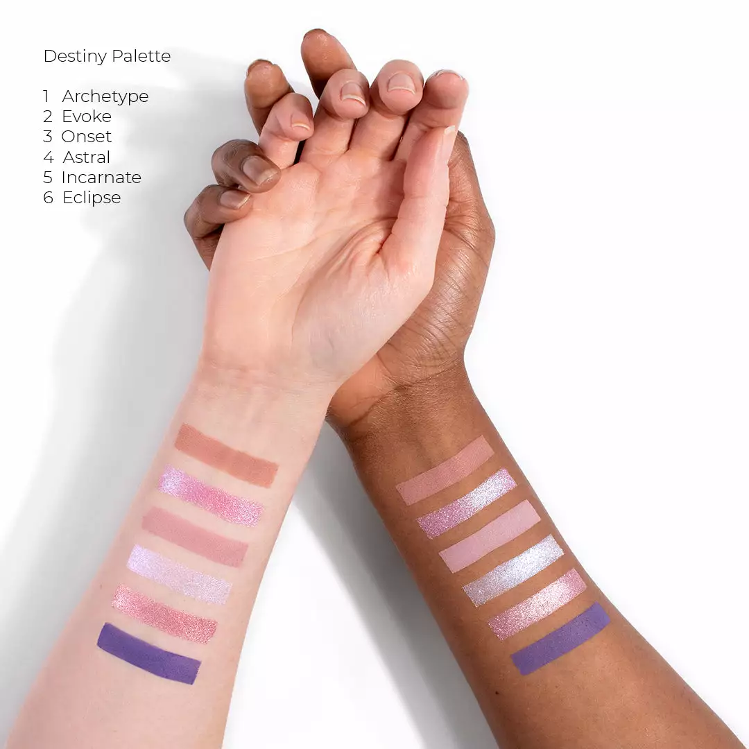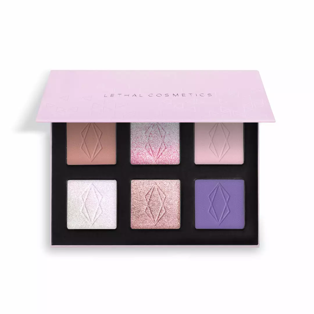 Purple-/pink-toned summer palette with 3 mattes and 3 metallic shadows.