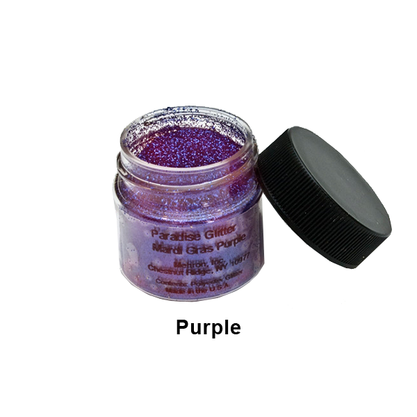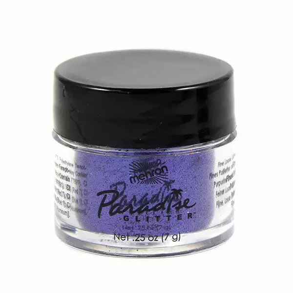 These dramatic glitters allow you to achieve ultra-reflective looks that draw attention! Mehron’s shimmering full-size glitter particles produce bold dramatic effects. Paradise Glitter reflects light with a brilliant, sparkling luster. Available in a .25 oz. size and a full range of vibrant colors.