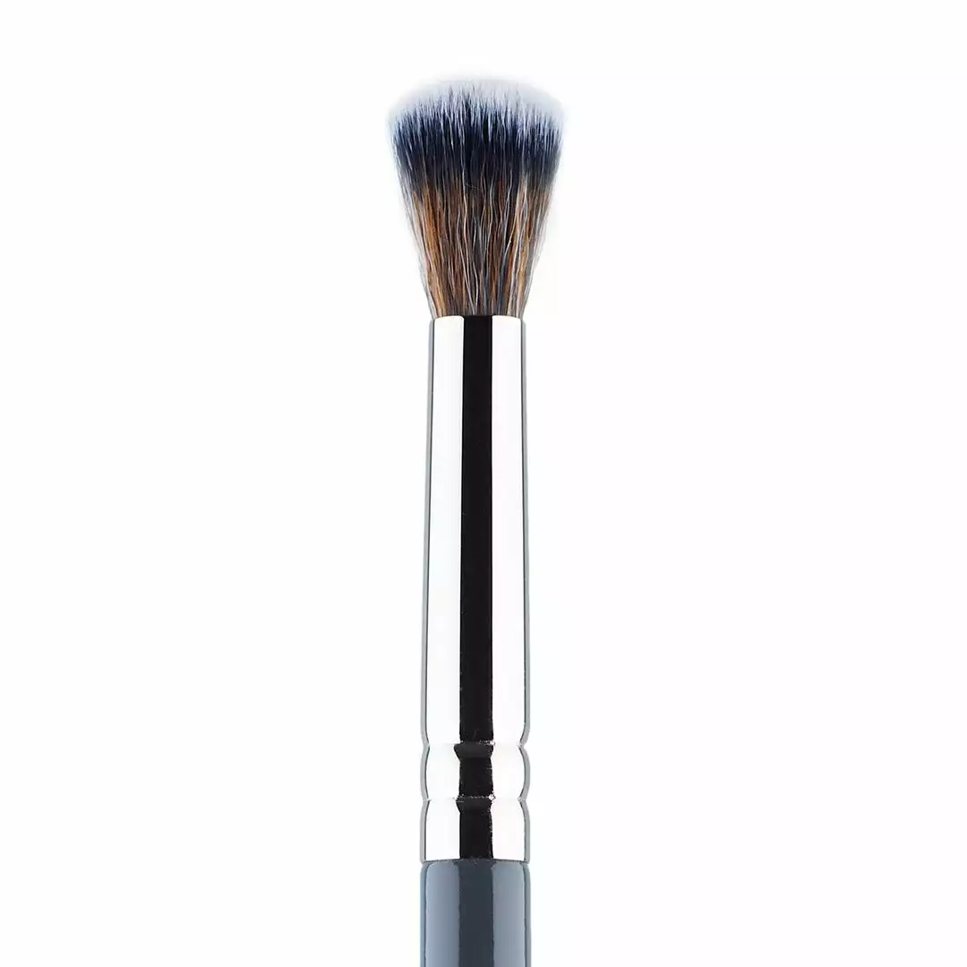 This synthetic eyeshadow brush has a round flat tip which helps you build product quickly and evenly. Each fiber tapers to a fine point helping to hold eyeshadow without dropping any product. My Flat Blender brush is an essential for the perfect eye.