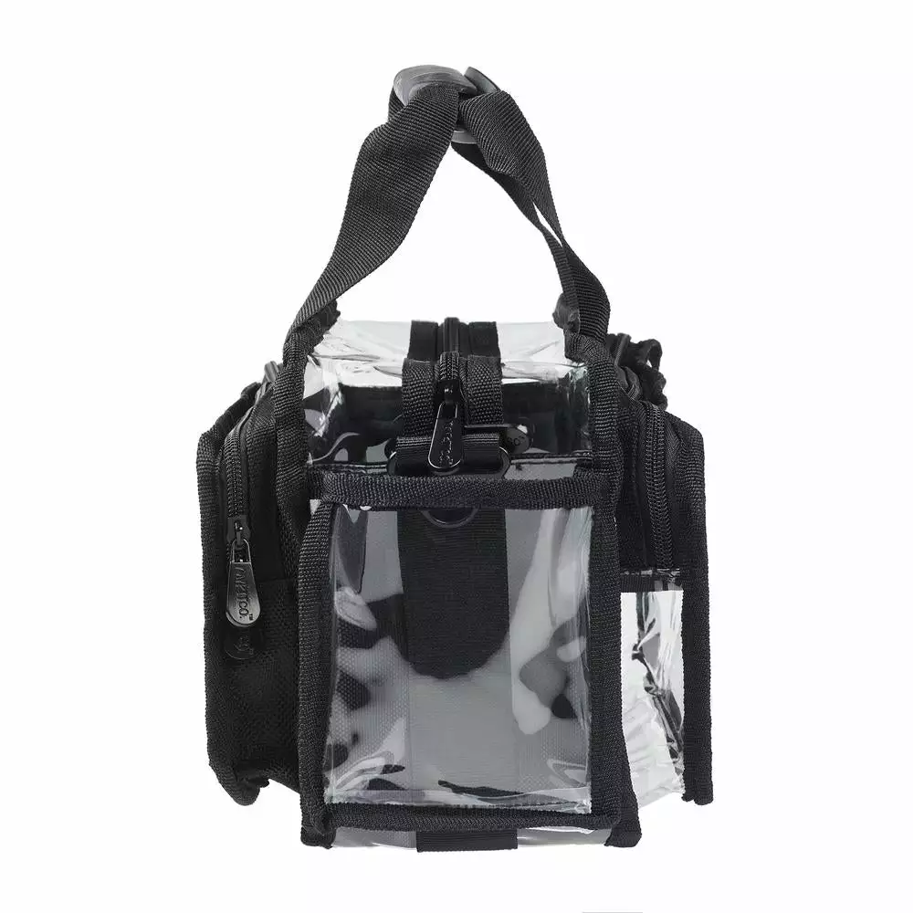 Perfect for working on set or on location this bag is spacious enough to take your makeup essentials with you but small enough to be discreet and convenient. No more crushed tissues! A separate canvas pouch fits a full standard box that easily dispenses tissues. Two clear side pockets and a central divide through the main compartment allows you to stand and separate your products as you see fit. A generous back pocket was designed to perfectly fit your makeup palettes. This bag is made with thicker premium PVC for increased strength and durability when the demand is high and includes a strong comfort grip handle and a removable, extendable shoulder strap with comfort pad to make it easy to transport.