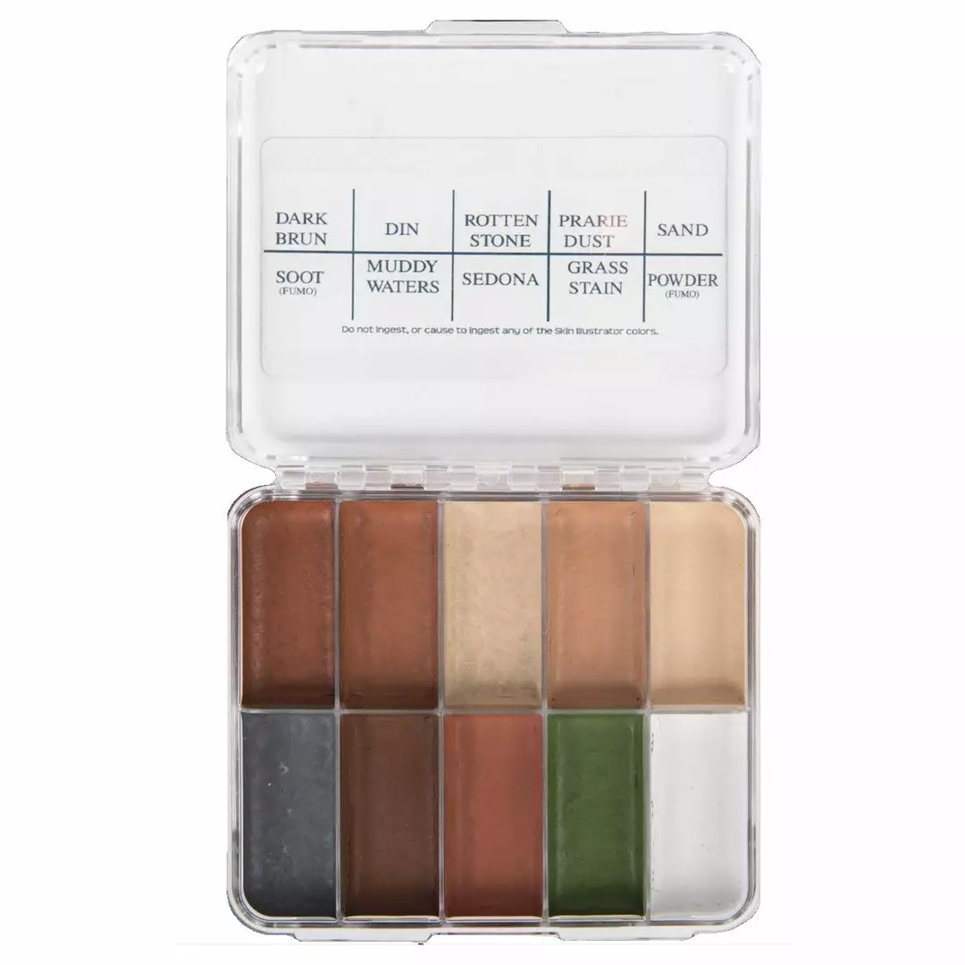Get everything but the stench with The Skin Illustrator Grunge Palette! Soil yourself with a variety of dirt, grime and filth with this complete set of foul shades. The On Set Grunge Palette is a mini version of the classic full sized Skin Illustrator Grunge Palette.This convenient palette is designed to give an artist access in an instant to favorite colors with this versatile, 10-color container. These are a must for any makeup FX artist kit.